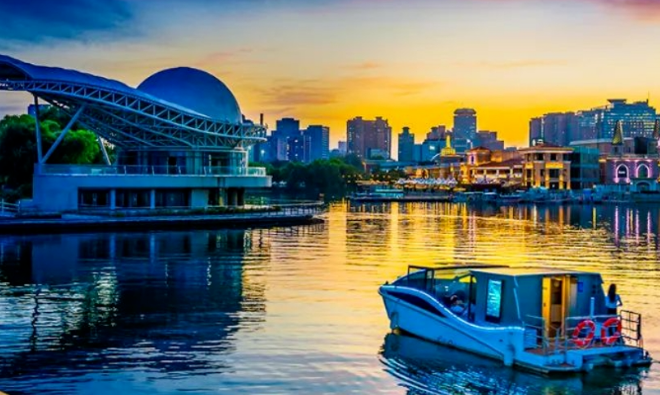 亮马河位于位于北京市东部地区,这里有一条风情水岸,灯光将亲水平台两岸的轮廓勾勒出来,水中倒映出河道两边“异国风情”的建筑,夜晚泛舟游览,观赏两岸风光,颇有种置身维多利亚港的感觉。